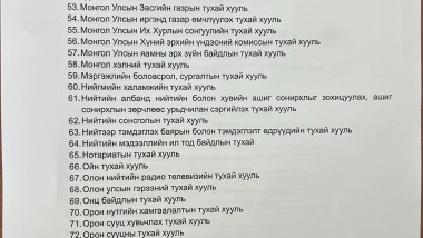 ИТХ, ХУРЛЫН ТӨЛӨӨЛӨГЧИЙН БҮРЭН ЭРХ, ҮЙЛ АЖИЛЛАГААТАЙ ХОЛБООТОЙ ХУУЛИЙН ЖАГСААЛТ