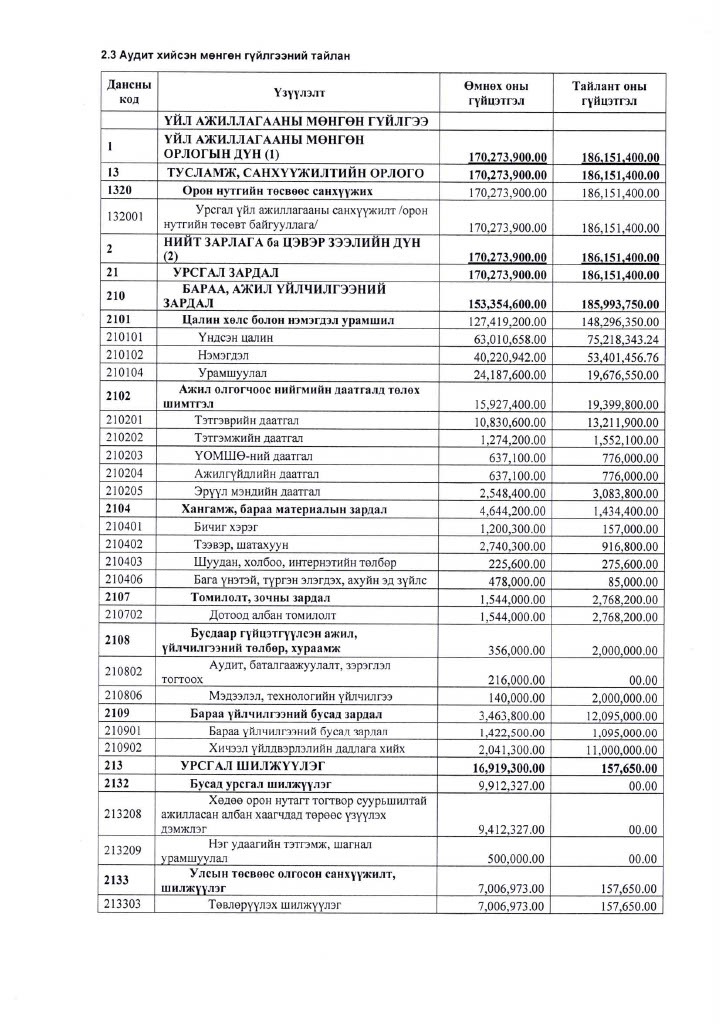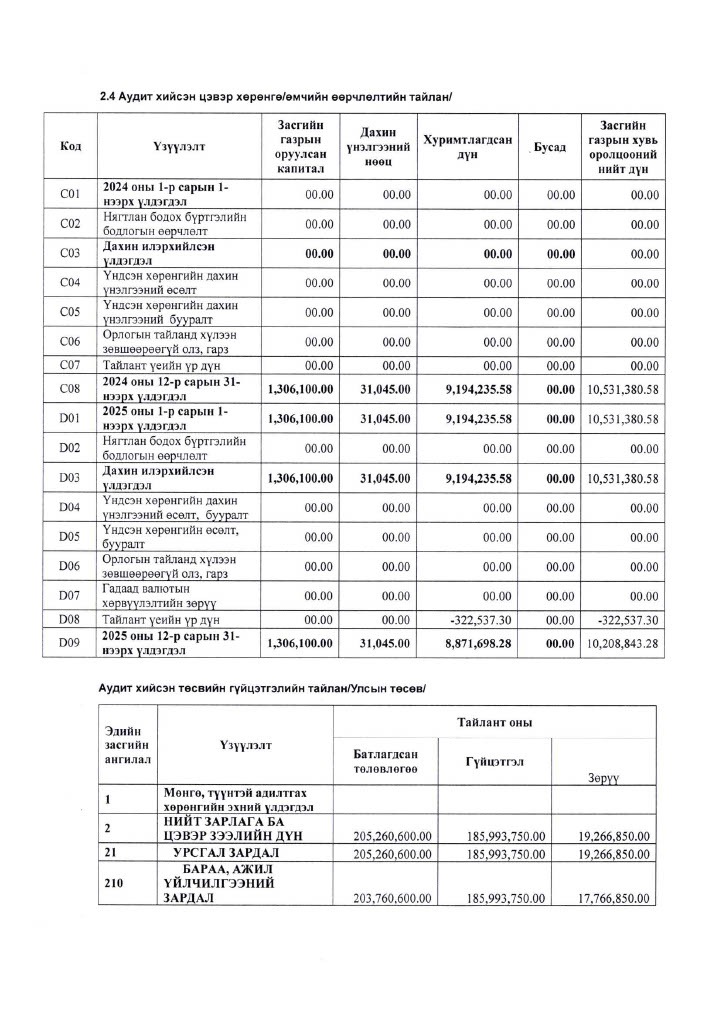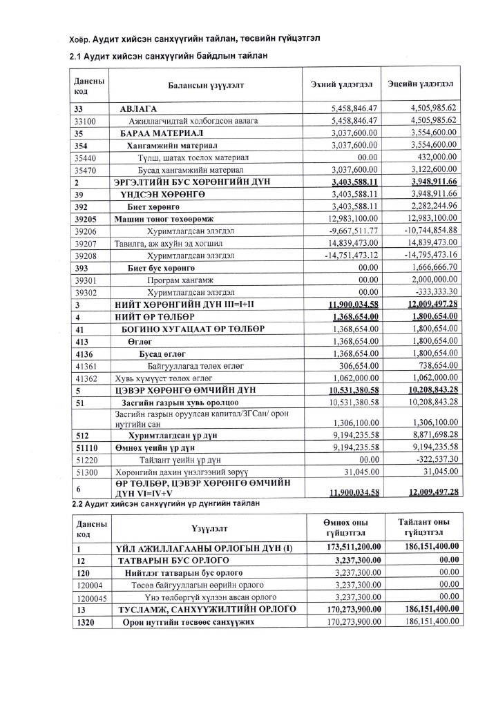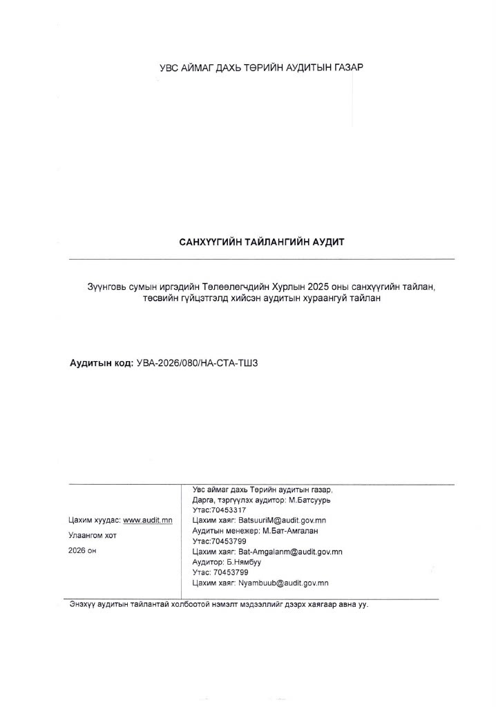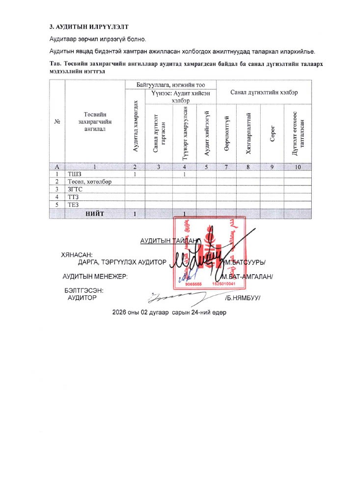 ИТХ-ын 2025 оны жилийн эцсийн санхүүгийн тайлан, төсвийн гүйцэтгэлд хийсэн аудитын хураангуй тайлан